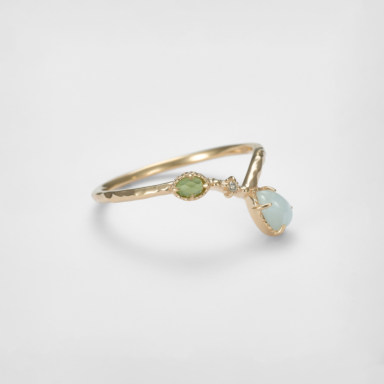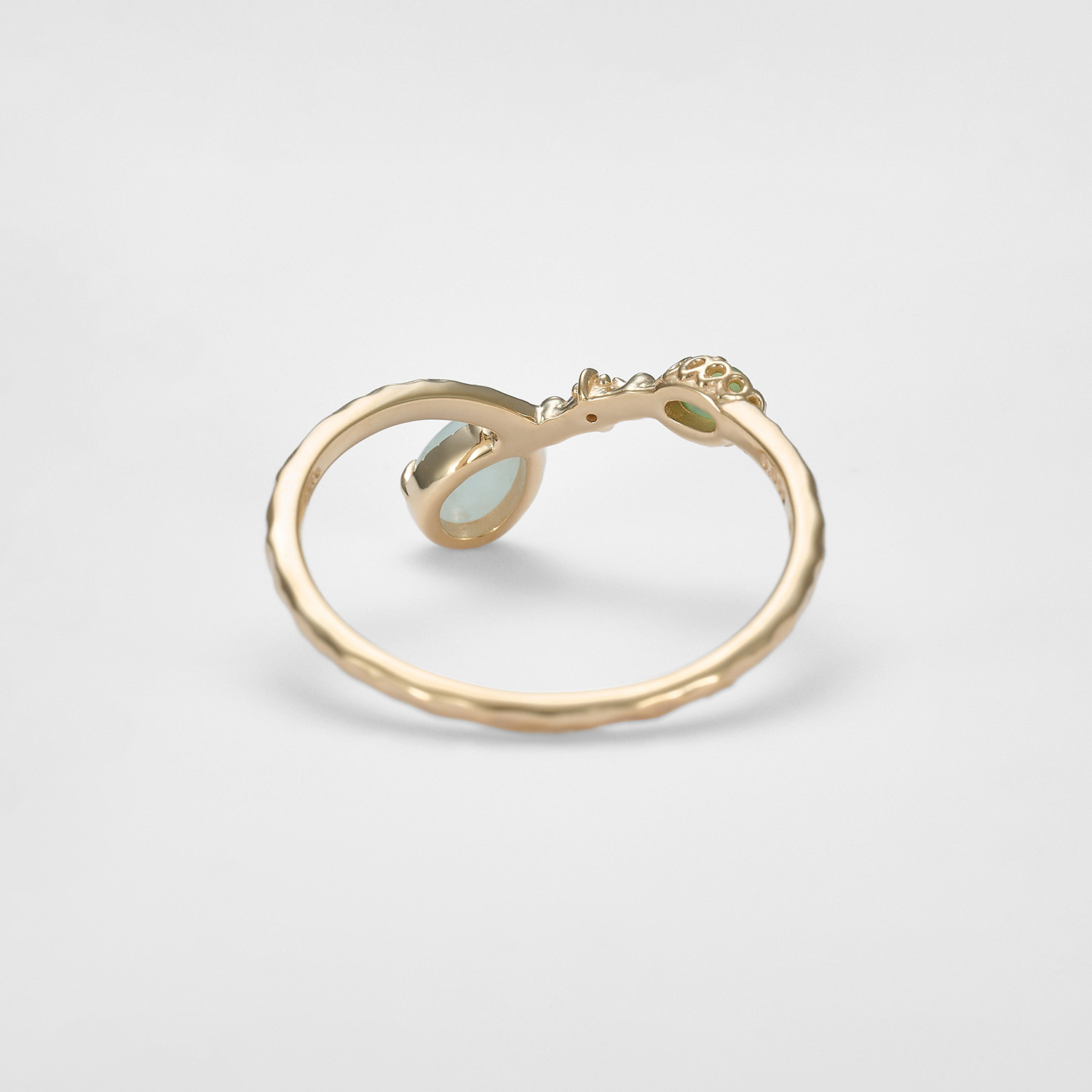 款号:1026111105415 材质: 5K金×海蓝宝石(乳白色)×蛇纹石(绿色)×钻石