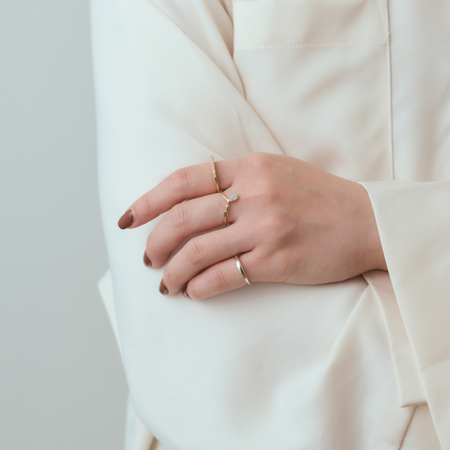 柔和的Y形曲线上点缀着清新的彩色宝石,在指尖绽放出温柔光彩。